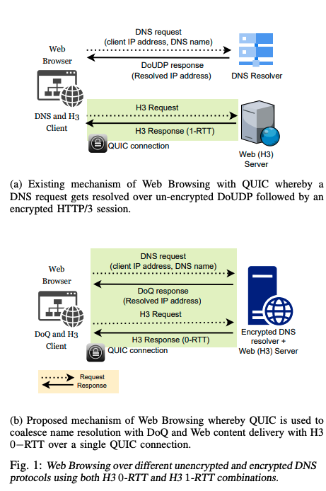 2022年11月にDNS over QUICについて論文を書いていた人たちの新作。DoQとHTTP/3(の0-RTT)を組み合わせると、UDPでのDNS+HTTP/3(1-RTT)を利用した場合と比べてページのロード時間が50%以上短縮されるとのこと。