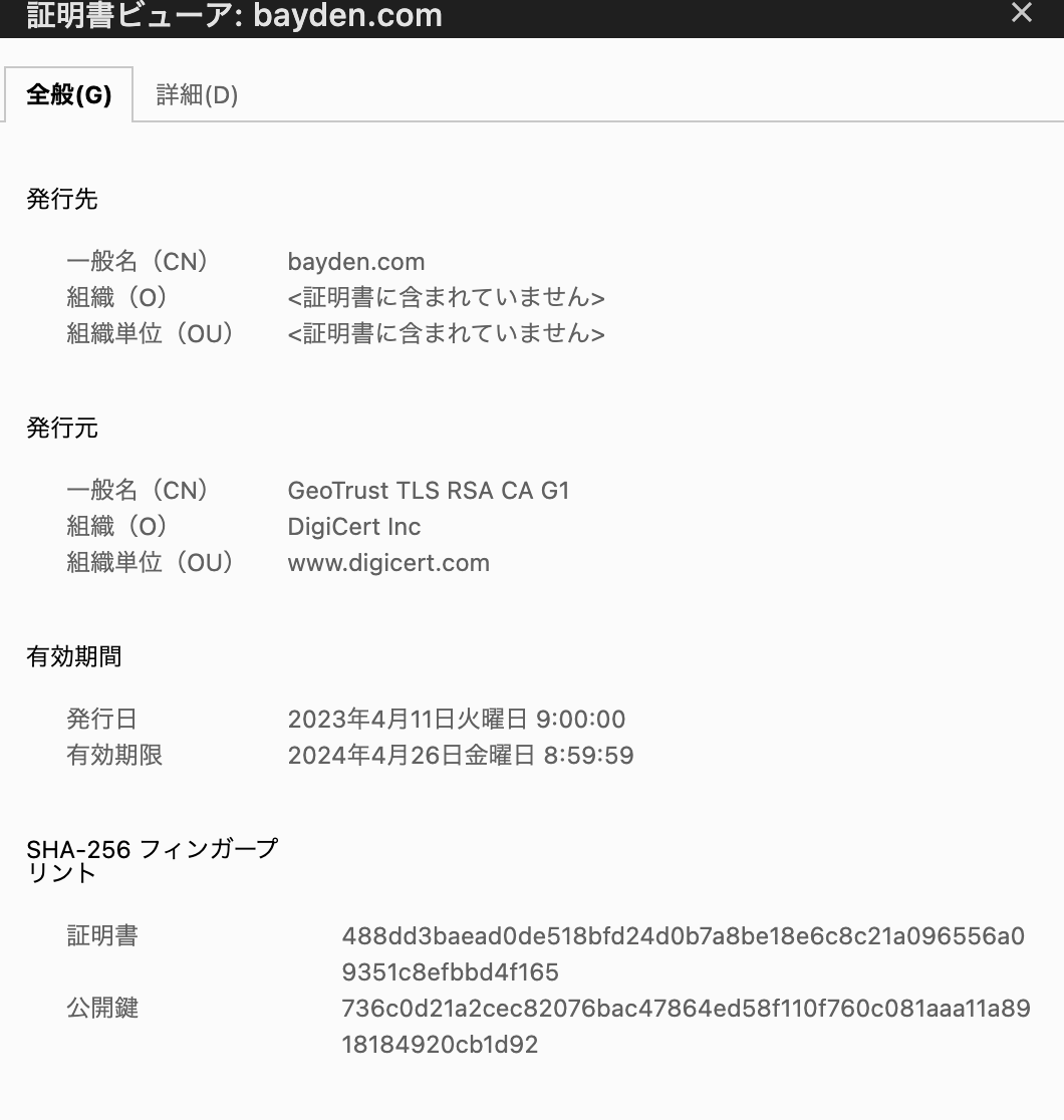 ▼bayden.comの証明書有効期限切れ